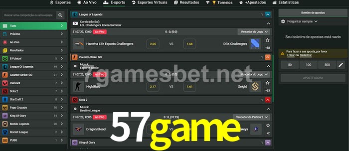 A aposta 57game oferece aos jogadores a experiência mais conveniente de apostas em eSports!